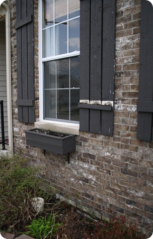 I used a brown paint from our little deck revamp last summer, and it’s SO close to the original brown of the shutters, but not exact. So I went ahead and painted the window boxes again too: